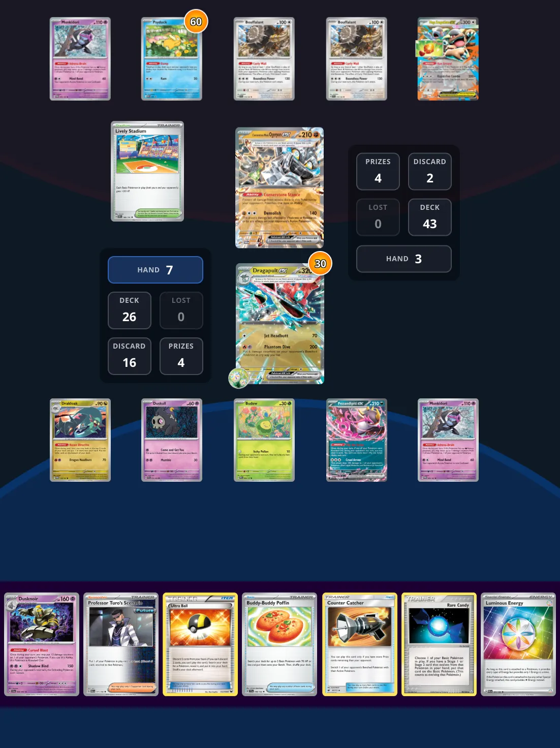 You’re piloting Dragapult vs Kangaskhan. Your goal is to win in exactly 1 turn