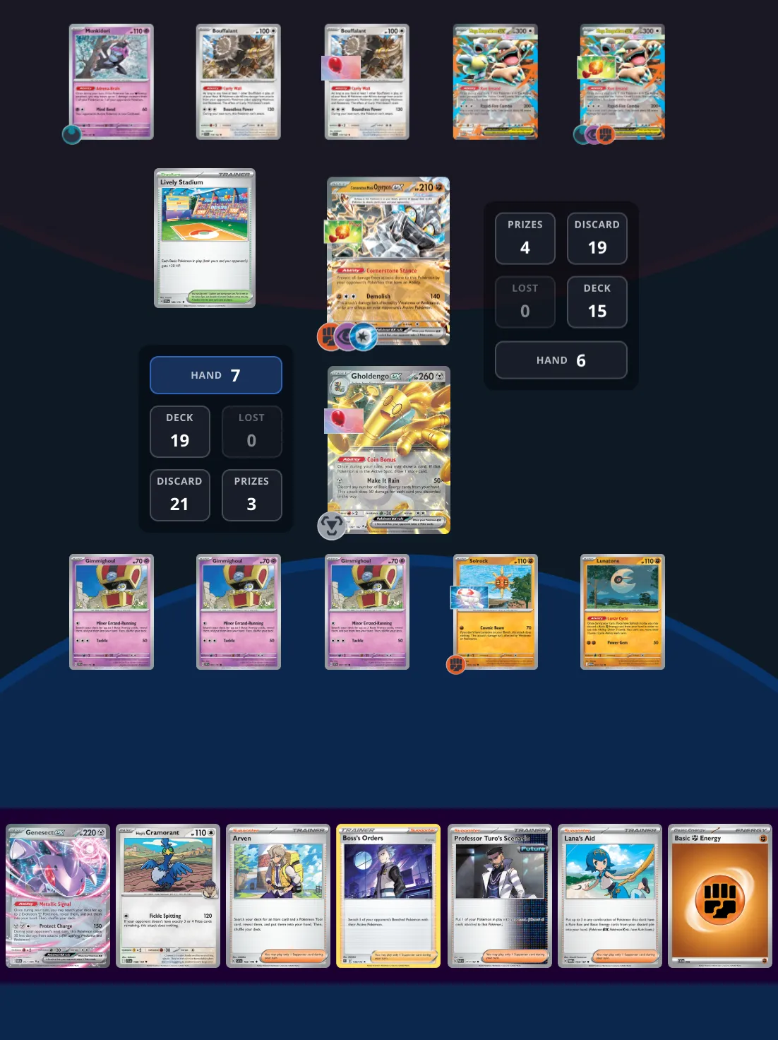 Your playing your dengo rocks deck and you hit a mega kangaskhan wall deck. Your opponent is trying to wall you out of the game with cornerstone ogerpon, but they over benched and you see a way to win the game that turn.