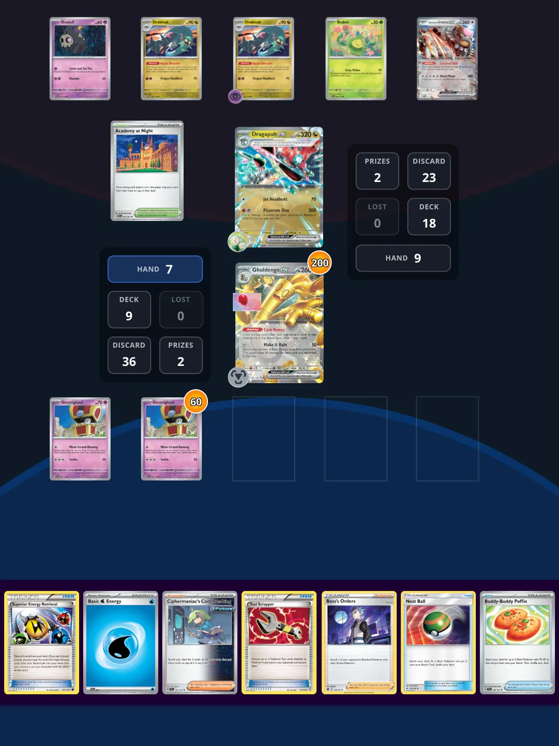 Let's take a throwback to Worlds 2025, where ESP Gholdengo was a very popular option. You are in an end-game situation vs Dragapult ex and you need to win this turn. After prize checking during your ESP search, you confirmed that both Levincia and a Darkness Energy are prized. This deck does runs Redeemable Ticket, so there's hope of getting them out, but you'll have to be smart. Reminder - The Puzzle's proper solution does not rely on luck; there is a sequence that will guarantee you the win. With that said, we swapped out the Chanseys in this deck with ones that are less "lucky".