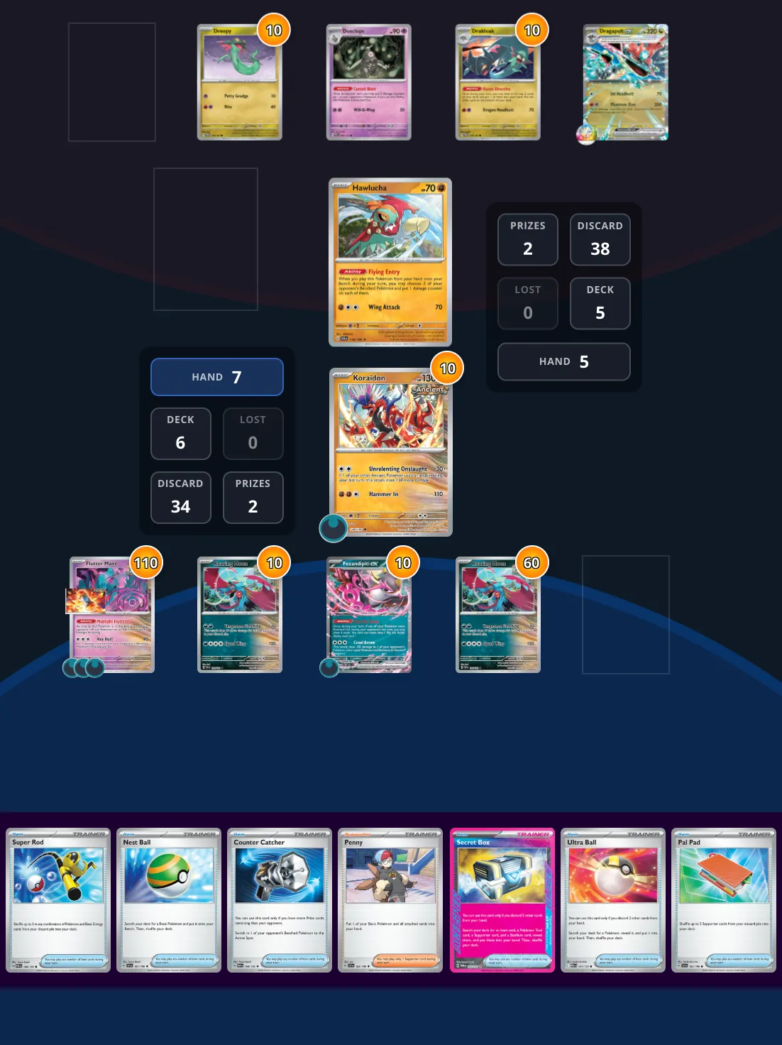 Against all odds, Ancient Box is in a good position against a Dragapult deck. With a truckload of resources in the bin, both players are struggling to close out the game. Your opponent has had to try and stall you for a turn while they set up a Dragapult ex. Your opponent has game in hand. Can you beat them to the punch and claim the dub this turn?