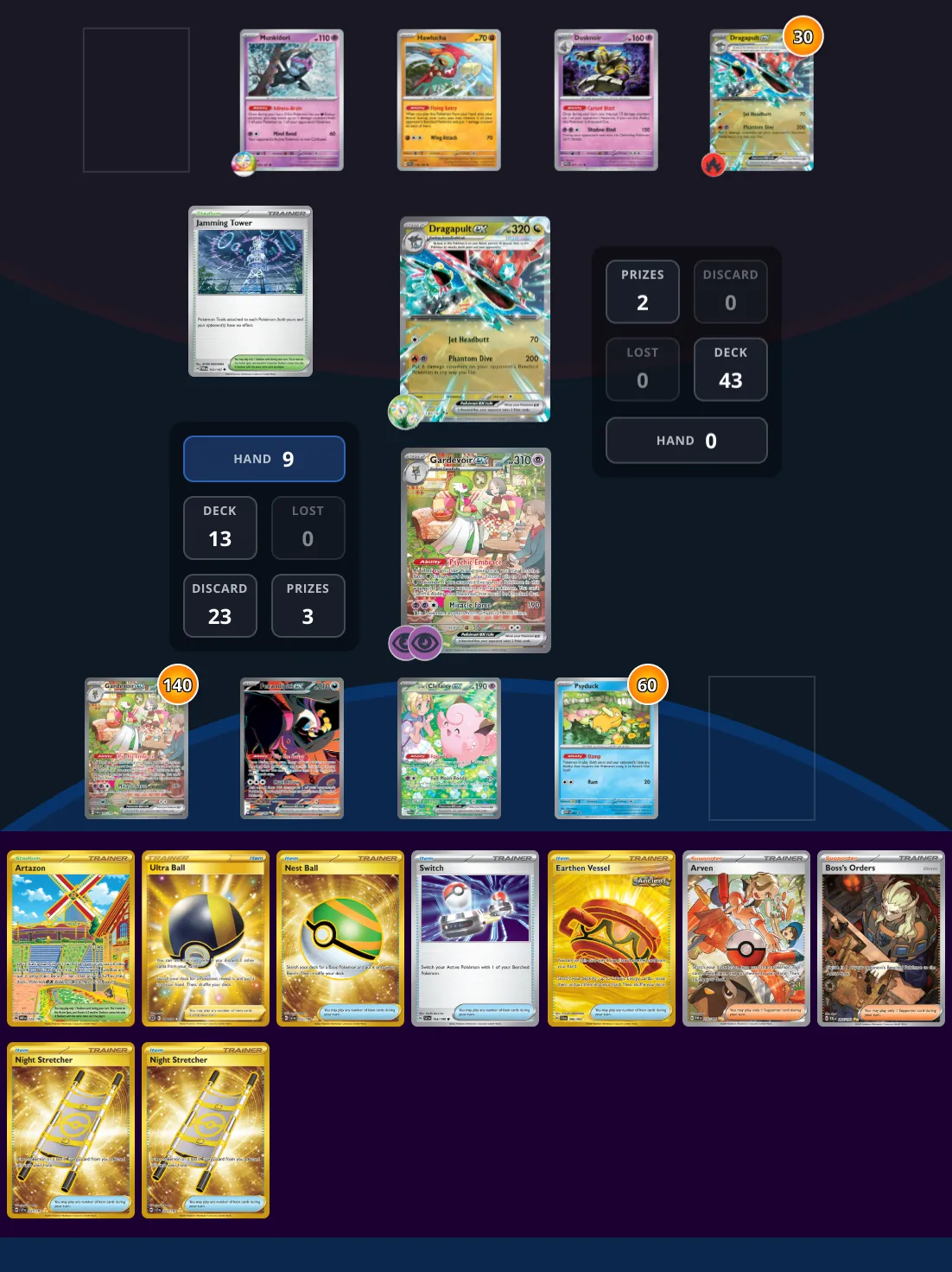 This was a classic Gardevoir ex vs. Dragapult ex matchup that required patience, sequencing, and full-board coordination to pull off the win. Rather than relying on one attacker, the game was decided through careful resource management, smart energy placement, and well-timed board shifts that forced the opponent into awkward positions. Every turn mattered, and victory came from setting up multiple threats at once and capitalizing when the opponent overcommitted — resulting in a strong finish and
