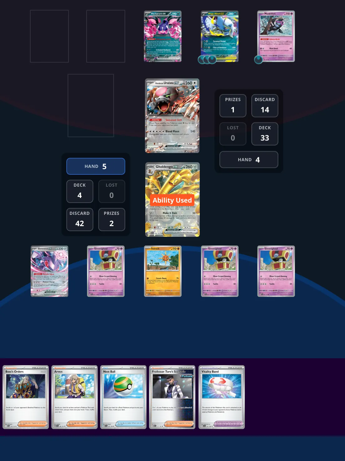 Bloodmoon Ursaluna ex knocked out your Lunatone last turn. The last 4 cards in your deck can win you the game. Can you figure out how to pull them?
