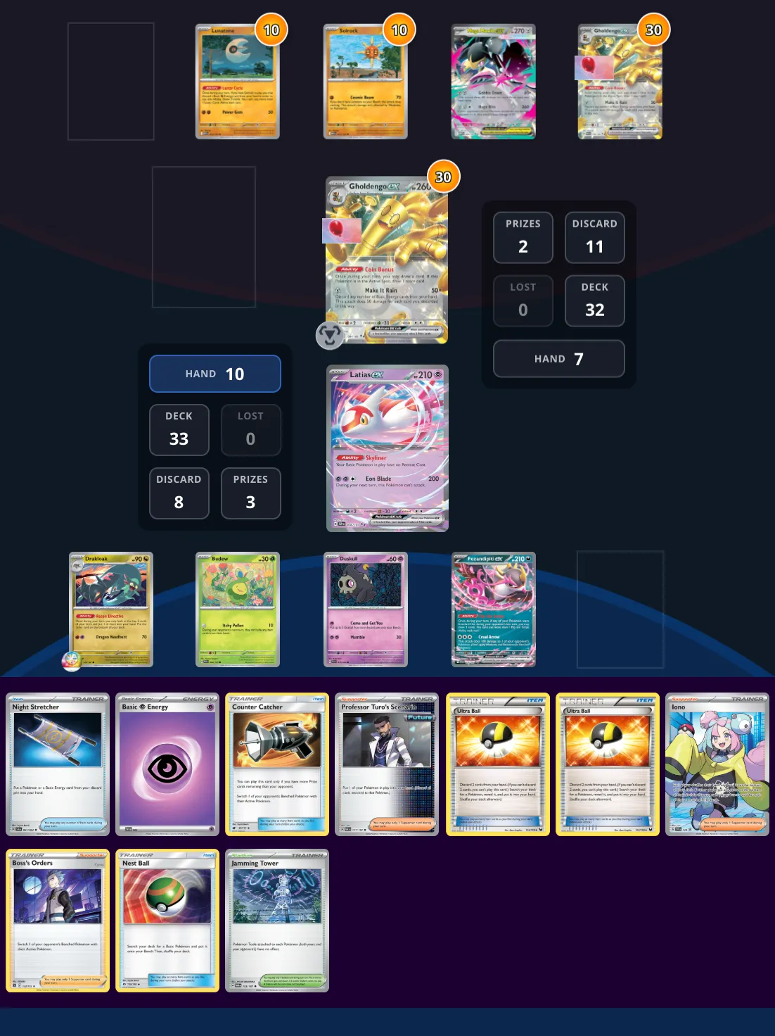 Dragapult vs Dengo, a classic matchup at this point. Gholdengo may have the tools needed to win on the next turn. There is a path to take three Prize cards. Can you find the road to success alongside Dragapult?